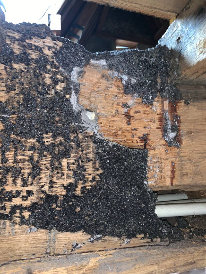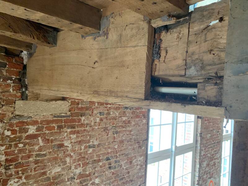 in de eerste reeks foto's zie je een moerbalk die als correct en gezond werd aanzien en dit na een grondig vooronderzoek en bovendien was het onderzoek slechts enkele dagen voor de instorting uitgevoerd.